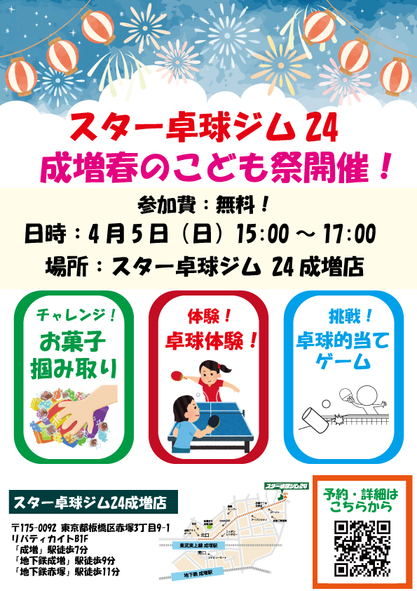 スター卓球ジム24 成増店にて、成増こども祭りを開催します!!!