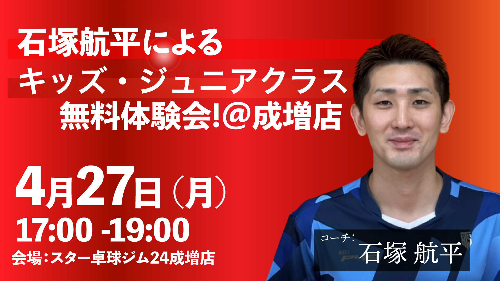 スター卓球ジム24成増店にて、下記の日程で、キッズ・ジュニアクラス卓球体験会を開催します!