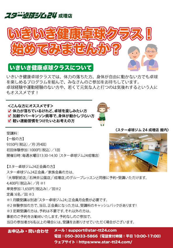 ※詳しい日程はスター卓球ジム24WEBサイト「最新情報」よりご確認下さい!