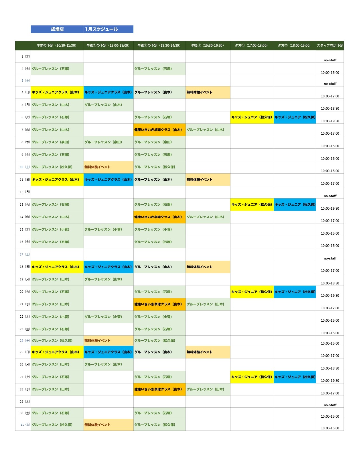 スター卓球ジム24正会員/家族会員の方は、「大塚駅前店」「石神井公園店」「成増店」のグループレッスンと同様に予約・受講いただけます。