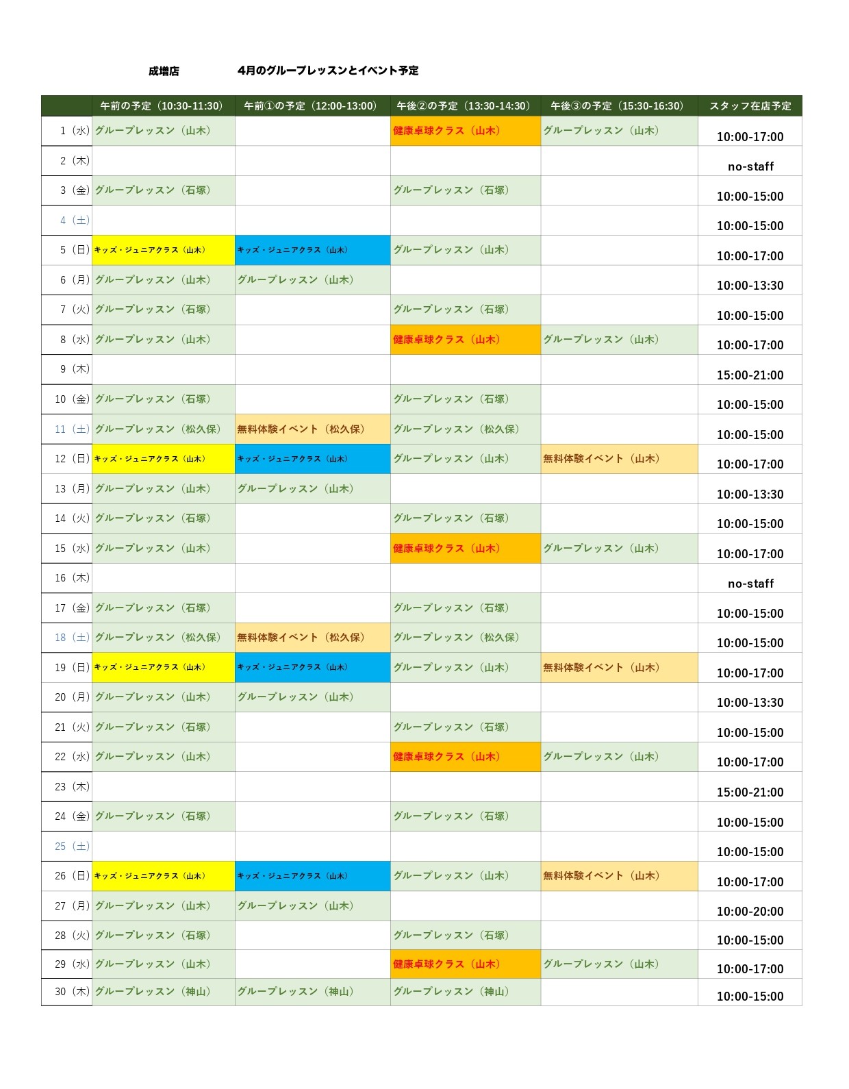 勤務時間外での石塚コーチのレッスンはこちらからご予約ください!